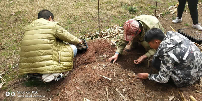 2. 上邑村瓜拉坂“育苗点”查看去年底种下的穴盘苗(并再次种下1321株);
